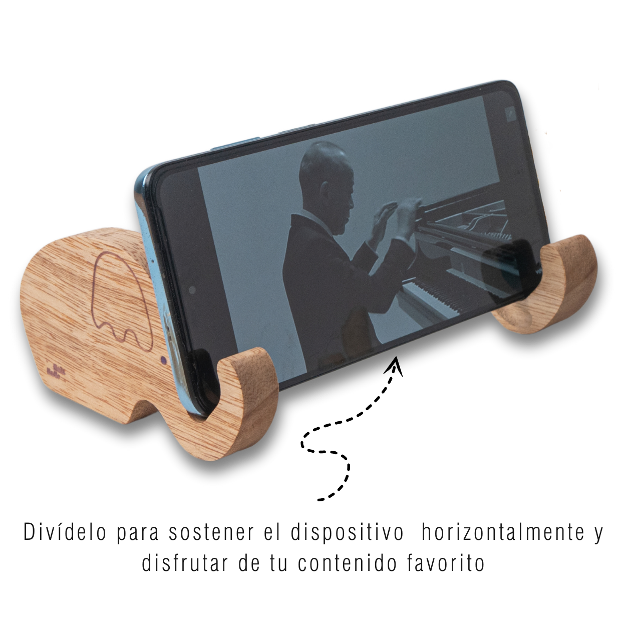 Es un soporte diseñado especialmente para dispositivos móviles, como celulares o tabletas, y sostenerlos en una posición ideal.